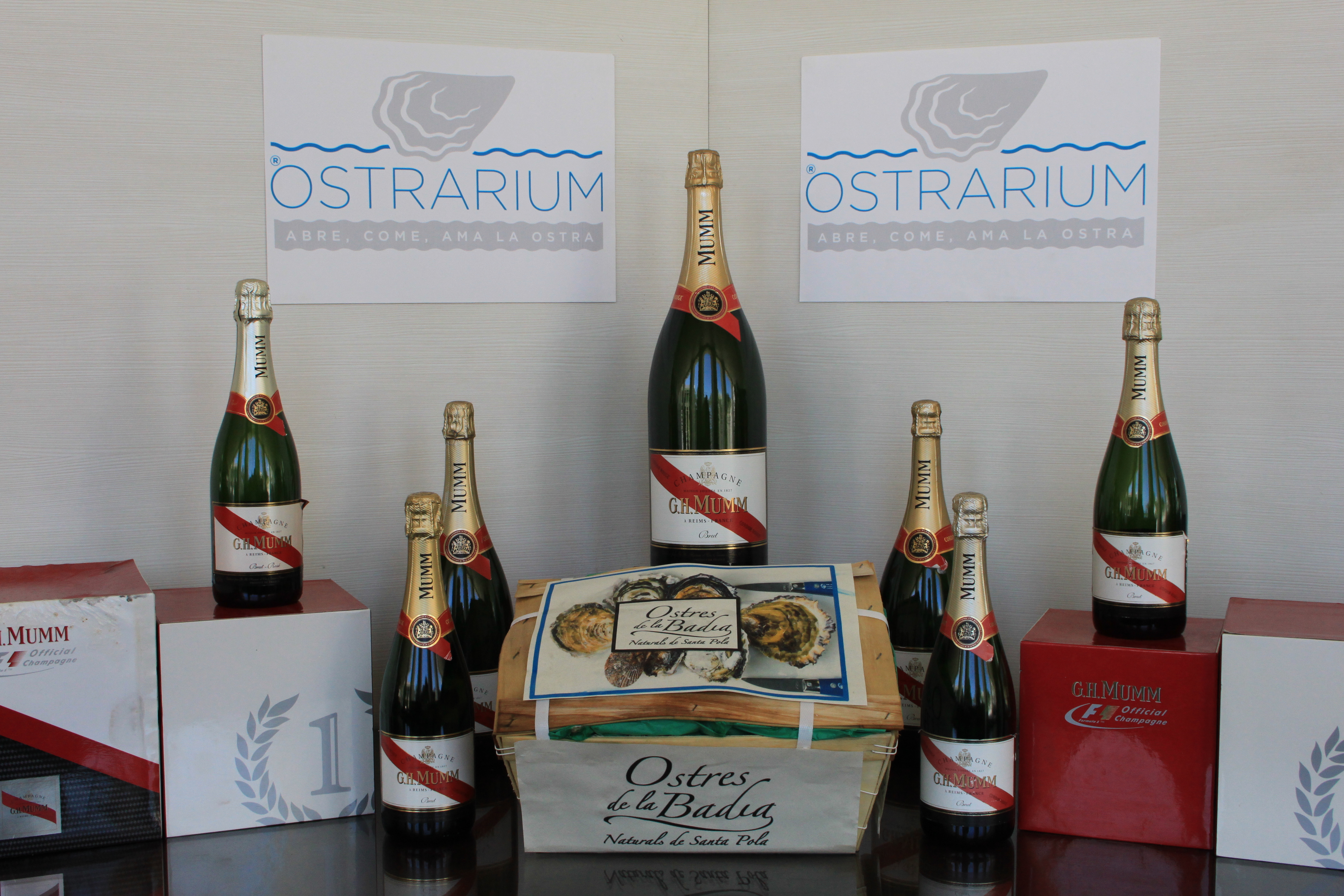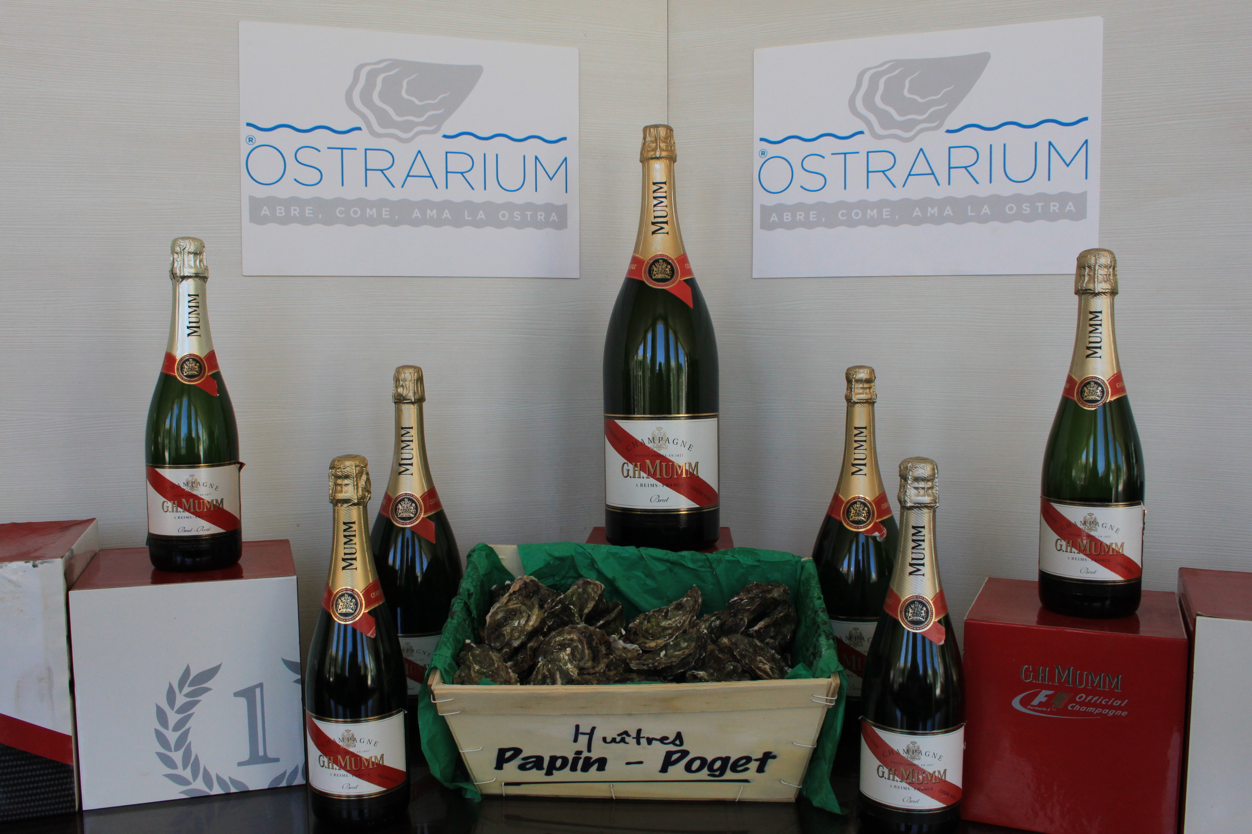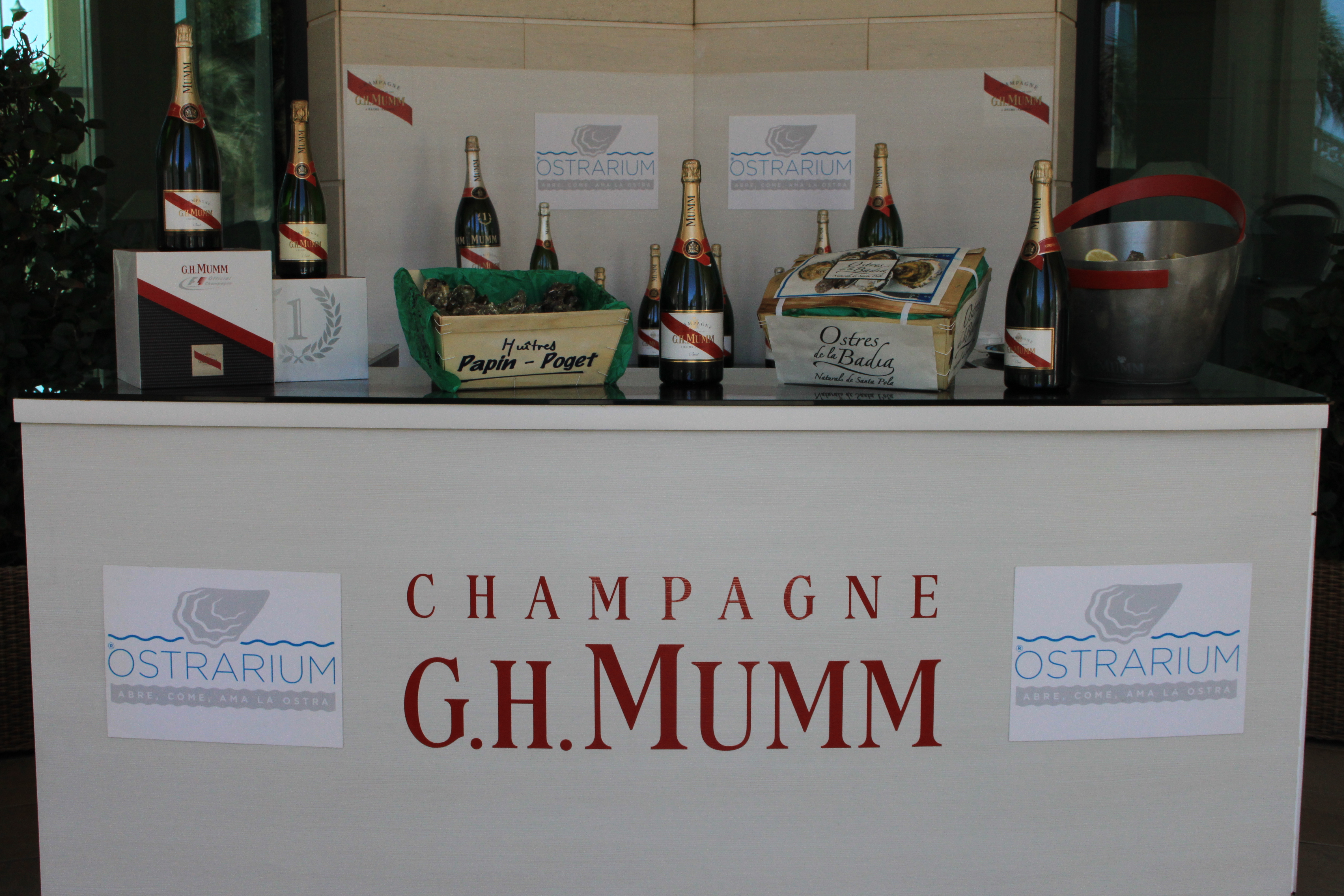 Ostras muy distintas, la exquisita y crocante de Claire de Papin Poget y la carnosa y contundente plana de Santa Pola acompañadas por champagne Mumm blanc y rosé.