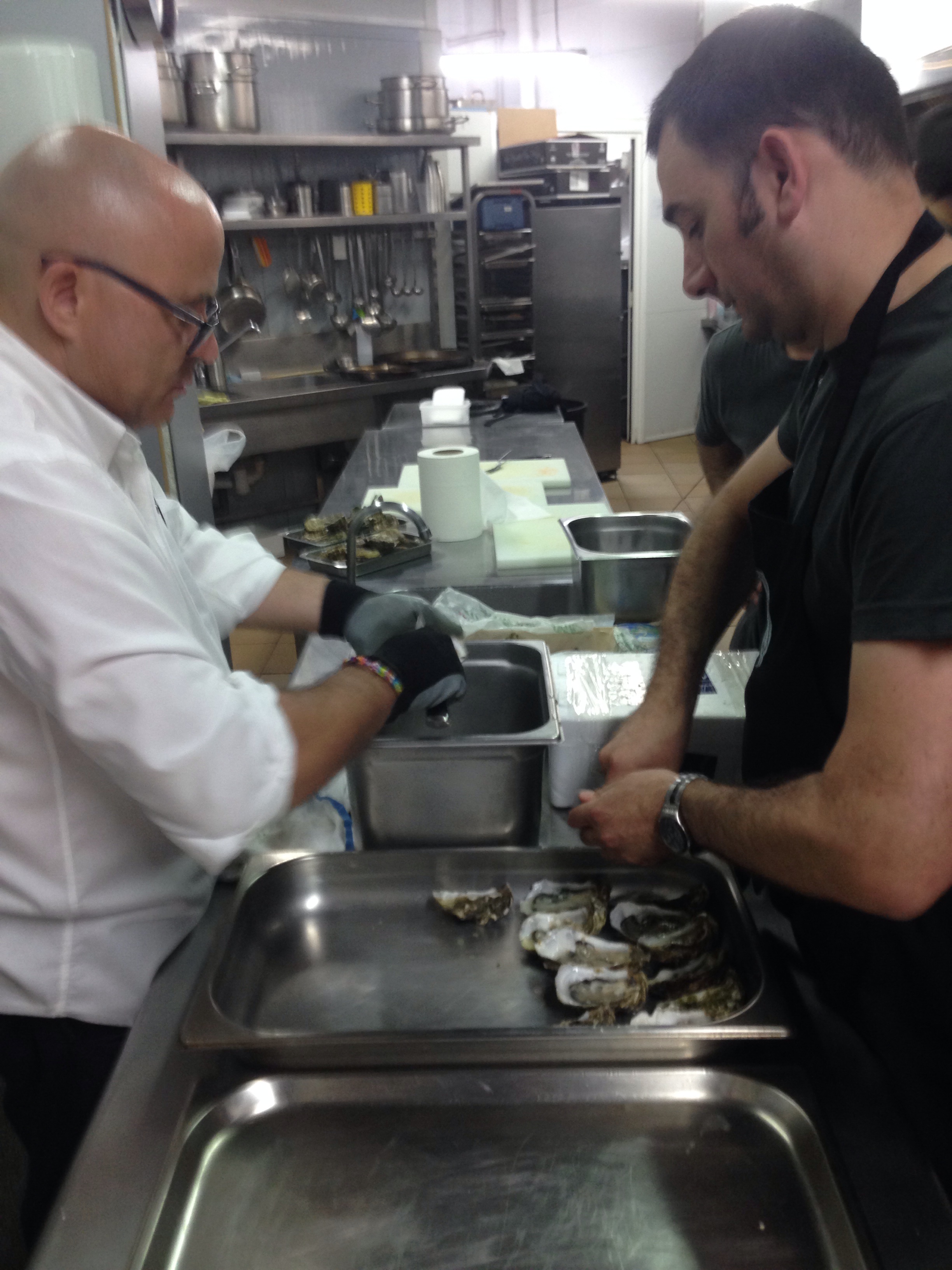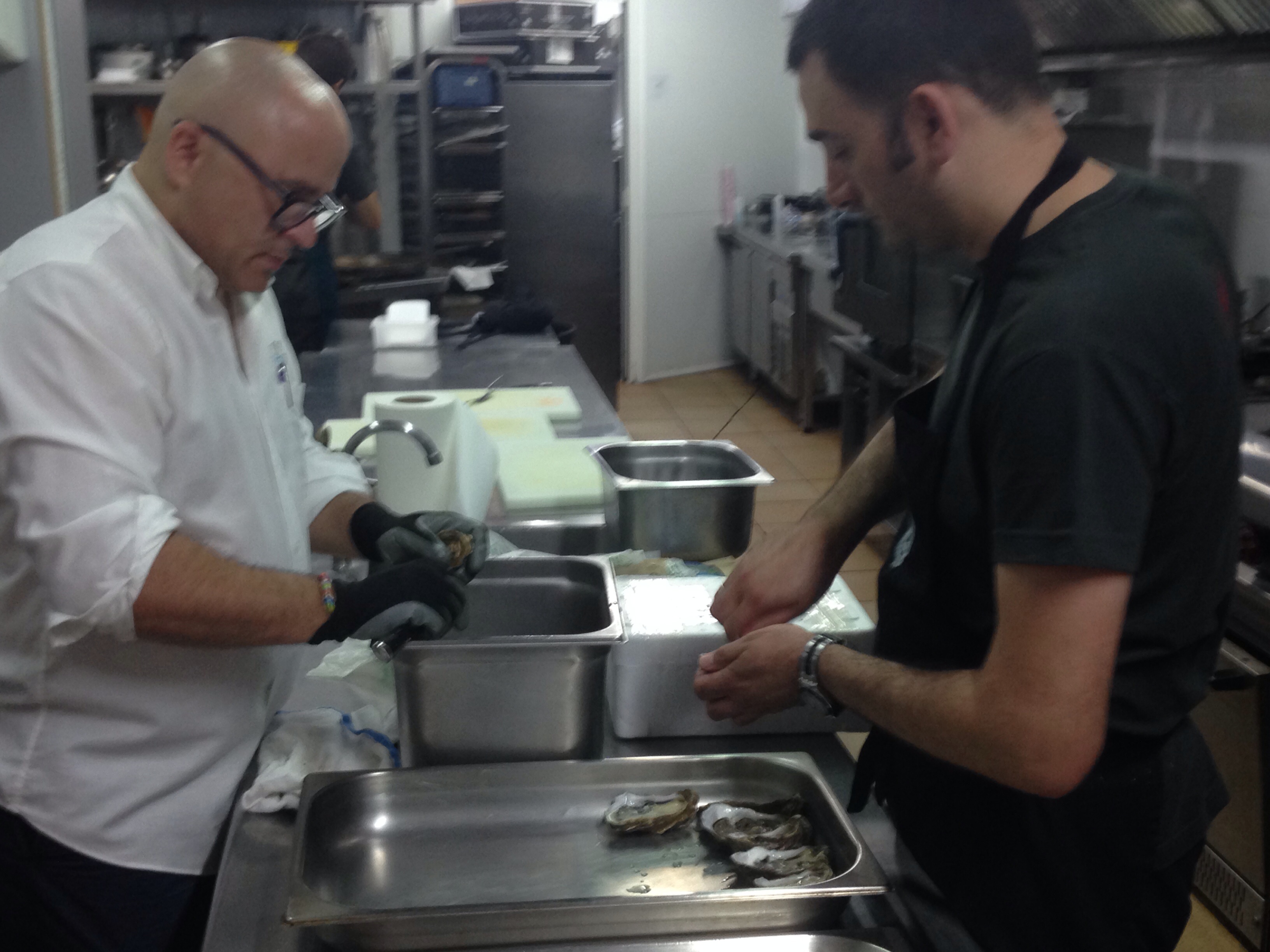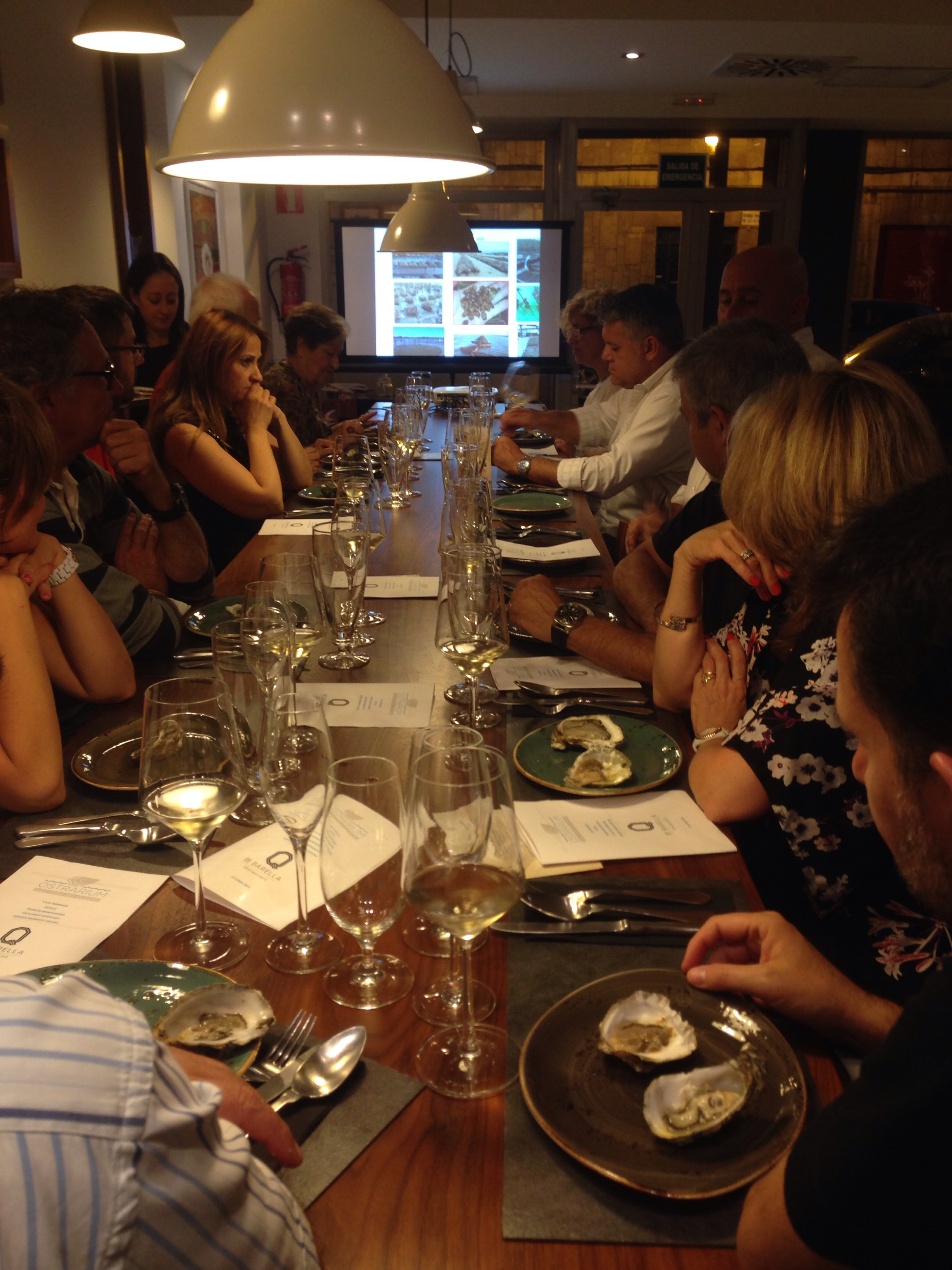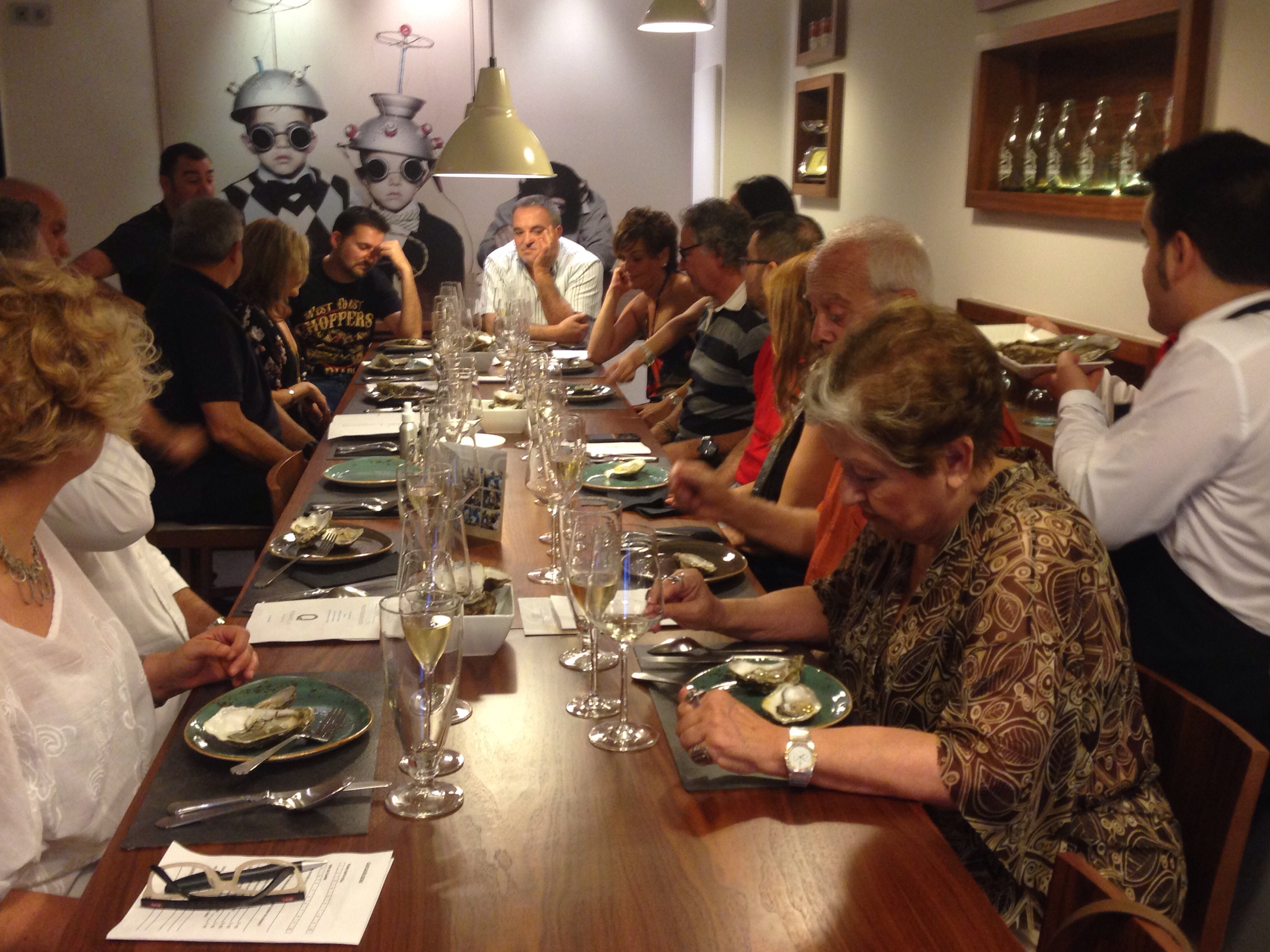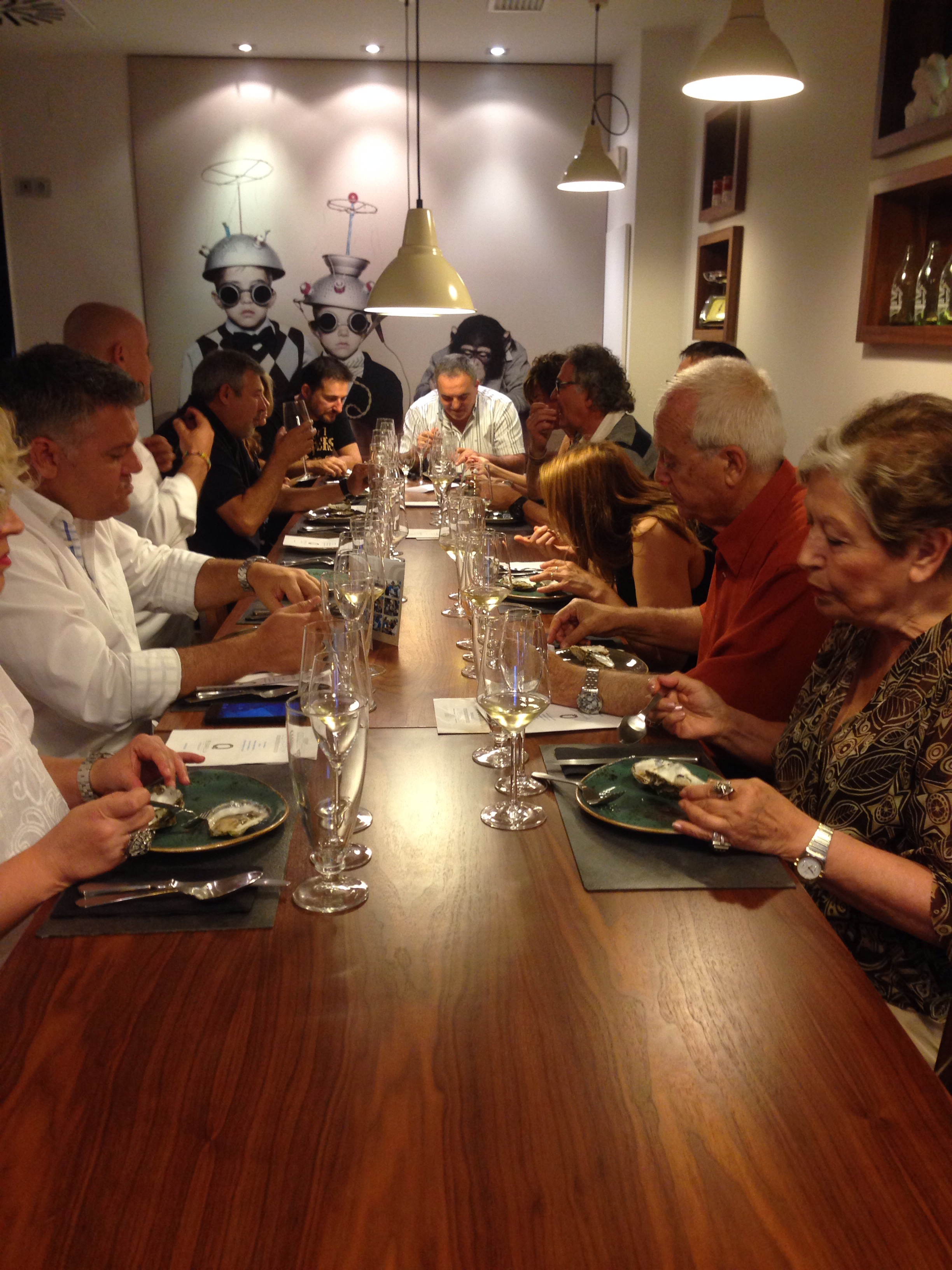 La cata fue espectacular y como va siendo habitual, entre las dos ostras que catamos, Special de Claire y las planas de Santa Pola, la alicantina ganó de nuevo…y van unas cuantas. Las diferencias son mínimas pero podemos decir que el gusto valenciano se decanta ligeramente por la contundencia, la sensación crocante y el ataque salino de las planas, aunque las Speciales estaban tremendas.